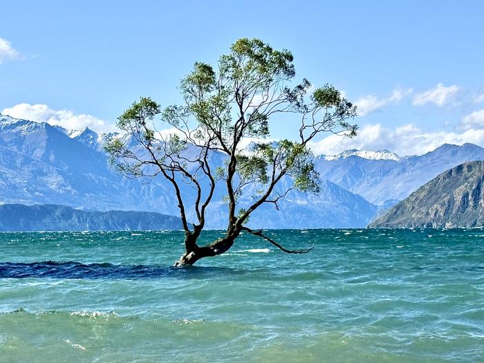 Wir nutzen den halben Tag und sind am langezogenen Hauptstrand ins Stadtzentrum von Wanaka spaziert. Das Zentrum ist sehr überschaubar. Kleine Cafés, ein paar Outdoorgeschäfte, einige Restaurants, eine Tankstelle und ein paar Lebensmittelläden…. das war’s. Somit haben wir uns noch für den Mount Iron Track entschieden. Dieser befindet sich am Ortseingang. Der Rundwanderweg auf den Mount Iron und wieder runter ist circa 4,5 Kilometer lang und dauert zwischen 60 bis 90 Minuten. Vom Gipfel des Berges hatten wir eine 360 Grad Aussicht auf die umliegenden Seen Lake Wanaka und Lake Hawea und die schneebedeckten Berge der südlichen Alpen. Auf dem Rückweg sind wir noch an einem Foto-Hotspot vorbeigekommen. Der kleine Baum im Lake Wanaka zieht jeden Tag hunderte Besucher für ein Foto an. Der Baum selber ist gar nicht so besonders, aber die Tatsache, dass er mitten im Wasser steht und sich hinter ihm die Aussicht auf den See und die schneebedeckten Berge befindet, machen diesen Baum zu einem tollen Fotomotiv. Am Ende des Tages hatten wir über 26.000 Schritte auf der Uhr und waren ordentlich platt.