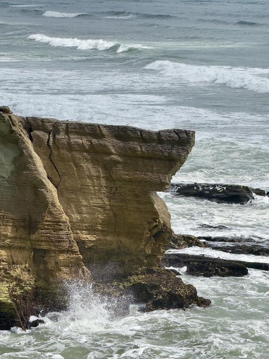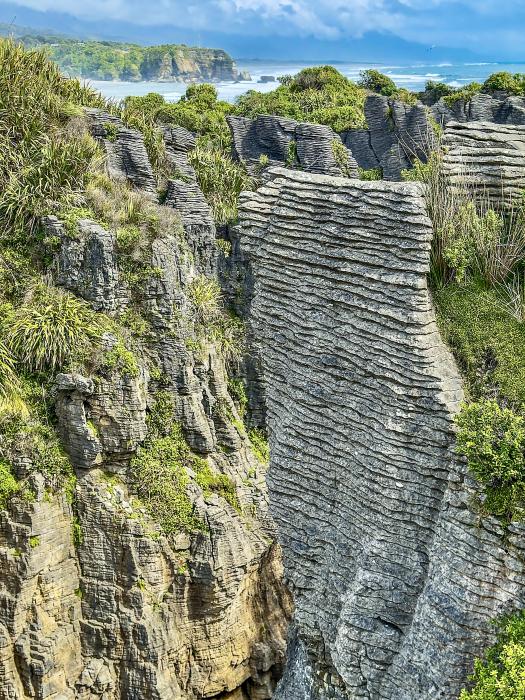 Im beschaulichen Küstenort Punakaiki wartet Neuseelands Traumstraße mit einem besonderen Naturschauspiel auf uns: den Pancake Rocks. Der Name könnte passender nicht sein. Die Türmen die sich in die Tasman-See hinaus schiebt, ähnelt einem Stapel von gigantischen Pfannkuchen. Wind und Wellen haben die eigentümliche Formation aus dem Kalkgestein gekratzt. Wir bestaunen diese einzigartigen Felsformationen. Das wir auch hier viele Bilder gemacht haben, versteht sich von selbst.