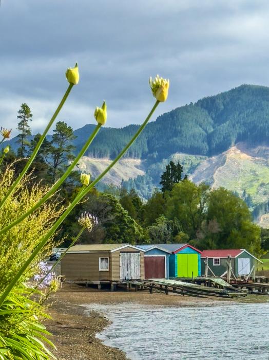 Wir fahren ins Zentrum der neuseeländischen Hopfenregion. Dort liegt die lebendige Stadt Motueka und ist für uns der Eingang zu den atemberaubenden Landschaften des Abel Tasman National Park. Wir buchen bei einer der vier zugelassenen Cruises eine ganztägige Kajak- und Wandertour. Wegen der Wettervorhersage haben wir unsere ursprüngliche Planung wieder mal kurzfristig verworfen. Eigentlich wollten wir 2 Tage im abgeschiedenen Tōtaranui Campground verbringen. Dieser liegt ganz im Norden des NP und für uns wäre der Startpunkt der Tour ein weiter Fahrweg.Wir organisierten einen neuen Stellplatz in Kaiteriteri, wo die Tagestour starten soll und machen uns auf den Weg nach Tōtaranui.