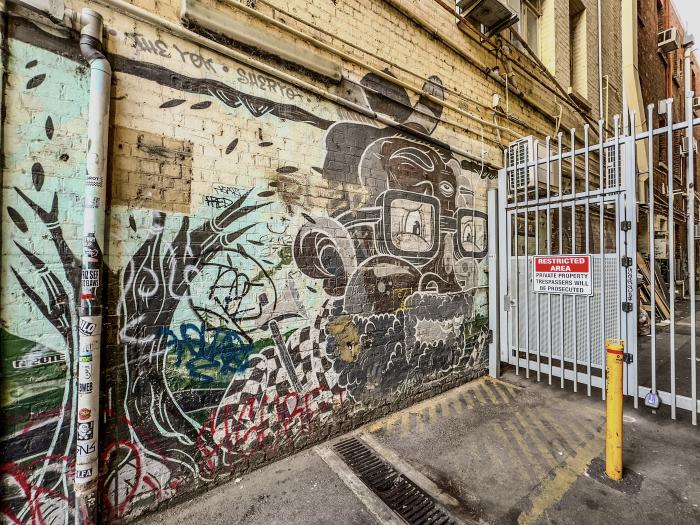 Überlebensgroße Wandbilder, kunstvoll verzierte Plakate, besprühte Mülltonnen – Melbourne ist bekannt für seine vielfältige Street Art. Die vielen kleinen Gassen und Seitenstraßen sind seit jeher eine optimale Spielwiese für Sprayer und Maler. Was lange als Schmiererei galt, hat sich mittlerweile zur populären Kunstform entwickelt, selbst die Behörden fördern in Melbourne die Street Art. Wir entdecken diese keinen Gassen mit den tollen Kunstwerken und schlendern entlang der Hosier Lane, welche nur wenige Meter vom zentralen Federation Square entfernt ist. Sie gilt als die berühmteste Street Art-Straße der Stadt. Man kann sich in Melbourne nicht einmal um die eigene Achse drehen, ohne dass man auch nur ein richtig gutes Graffiti sieht. Damit meinen ich nicht irgendein Geschmiere, sondern richtig schöne Kunstwerke. Gerne hätte ich beim Fotografieren der Kunstwerke mehr Zeit gehabt, aber wir wollten noch mehr von der Stadt sehen.