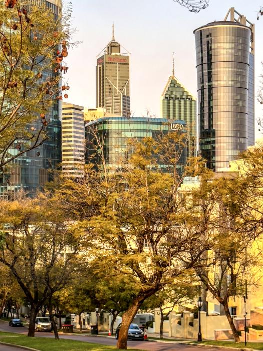 * Perth's Innenstadt: bietet einen starken Kontrast zwischen historischen Gebäuden aus der britischen Kolonial- und Besiedlungszeit und bis zu 249 m hohen Hochhäusern aus Glas, Stahl und Beton. Dieser architektonische Mix verleitet mich dazu, den Gegensatz mit etlichen Fotos festzuhalten. Die meisten alten historische Gebäude wurden in der damaligen Zeit durch Gefangene errichtet.