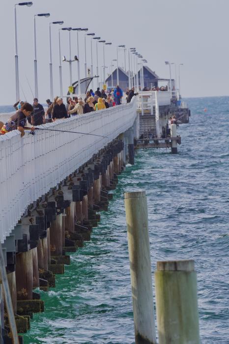 Nach der tollen Begegnung mit den Riesen ging unser Trip weiter nach Busselton. Dort haben wir uns eines der bekanntesten Wahrzeichen Westaustraliens angesehen - der Busselton Jetty. Er ist 1,841 km lang und erstreckt sich über die geschützte Geographe Bay. Damit ist er der längste Holzsteg der südlichen Hemisphäre. Aufgrund des seichten Küstenverlaufs und der Untiefen wurde hier ein sehr langer Steg für die Versorgung mit Wasserflugzeugen oder Schiffen benötigt. Am Ende des Stegs befindet sich ein Unterwasserobservatorium, welches einen Einblick in die Unterwasserwelt vom Flachwasser bis zum 9 Meter tiefen Grund ermöglicht. Unter Wasser gibt es für Taucher einen beeindruckenden Skulpturenpark. Aufgrund der Strömungen an diesem Teil der australischen Westküste, insbesondere aufgrund des Leeuwin-Stroms, der vom Norden her für warme Wassertemperaturen sorgt, lassen sich zahlreiche tropische Fische und andere Meereslebewesen an den Holzpfählen des Busselton Jettys beobachten. Viele Angler versuchen am Jetty ihr Glück und wir haben viele Tintenspritzer auf dem Jetty und Tintenfische an der Angel gesehen.Den Abend haben wir in der Shelter Brewing bei einer kleinen Bierverkostung beendet und sind weiterhin beseelt von den vielen schönen Eindrücken die wir auf unserer Reise erleben dürfen.