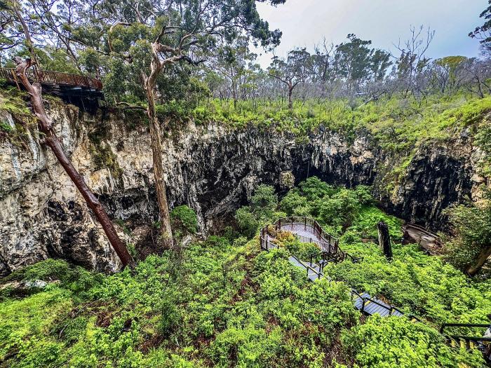 Mount Gambier, Halls Gap - Grampians NP, Great Ocean RoadMount Gambier:Auf dem Weg zum NP habe wir auf einem kleinen aber sehr feinem Campinglatz bei Mount Gambier übernachtet. Am nächsten Morgen sind wir durch Zufall am Blue Lake-einem Kratersee- vorbeigekommen. Sofort war klar, dass wir uns den Katersee zumindest vom Aussichtspunkt ansehen mussten.