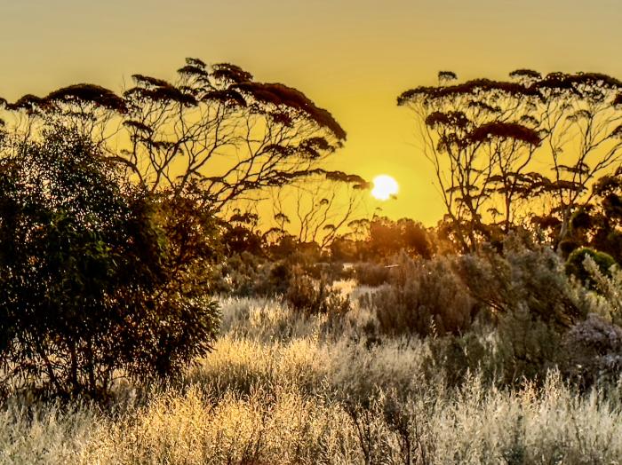 Unser Nachtlager wollen wir im Nationalpark aufschlagen, dort gibt es einen kleinen Platz mitten im Outback. Der Weg dorthin besteht aus löchriger und nasser gravelroad und wir sind schon ein bissel unsicher, ob unser kleiner Camper das durchhält. Durchgeschüttelt und mit rotem Sand bespritz kommen wir auf dem farmähnlichen Gelände an. An den Türen zu den Waschräumen befinden sich Hinweise, doch unbedingt die Türen immer zu schließen, damit Frösche, Schlangen, Echsen und Hasen „draußen bleiben“. Das beherzigen wir gerne und verschwinden dann auch bald im Camper.