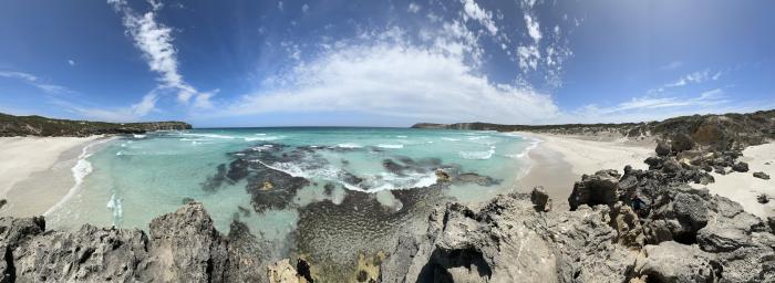 Beim Hamelin Pool haben wir die ältesten Fossilien der Welt gesehen - Stromatolites. Leider war durch einen heftigen Zyklon im Jahr 2021 die Steganlage zerstört, so das wir nicht wirklich nah an die Fossilien herankamen.