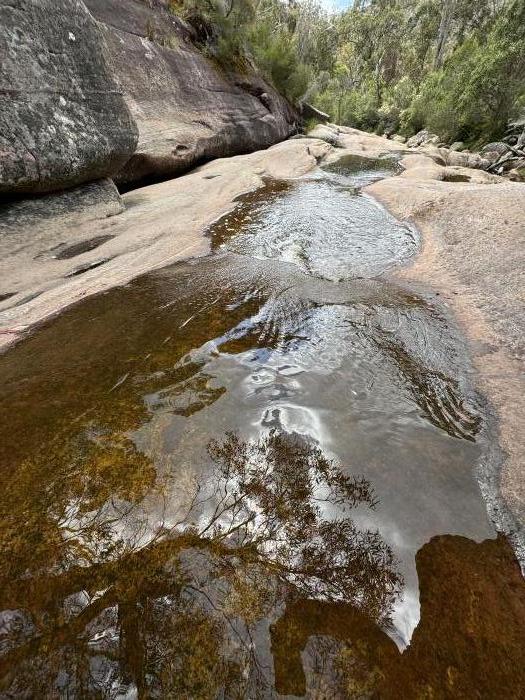 Bevor es losgeht, sollen wir aber im Ort noch zum „Venus Bad“ gehen und den Kängurus auf dem Weg dorthin einen Besuch abstatten. Wir vergessen die Zeit, als wir die wirklich süßen Kängurus sehen. (u.a. Mutter mit Baby). Viele Fotos wurden gemacht und das Sozialverhalten zwischen Müttern und Kindern, wurde ausgiebig beobachtet. Wir konnten uns kaum trennen, aber wir wollten noch mehr von der schönen Natur sehen. Das Venus Bad haben wir nach einem kurzen Spaziergang erreicht. Ein kleiner Bach, der den Berg hinunter floss, durchströmte mehrere kleine Becken, welche sich im glatten Granitgestein befanden. Wäre das Wasser nicht so kalt gewesen, hätte man ein Bad in diesem Naturbecken nehmen können.