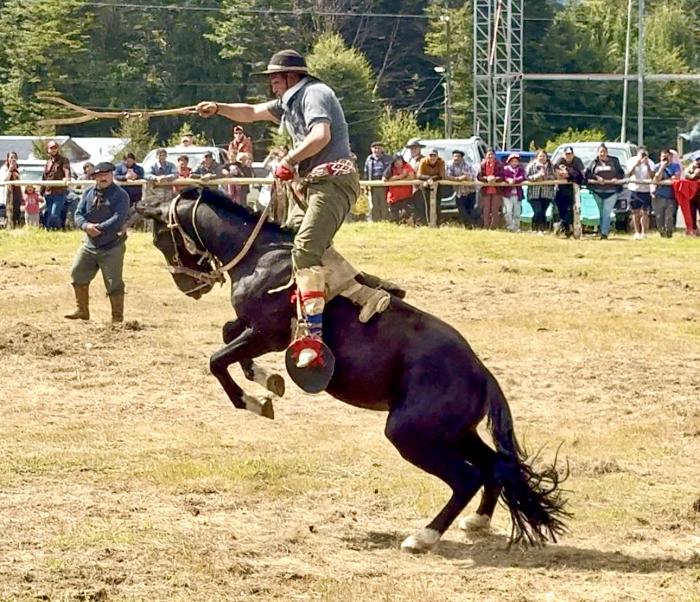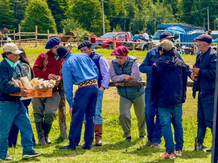Weiter ging es - bis wir im Auto laute Musik von draußen hörten…ein Dorffest. Also Vollbremsung, Parkplatz suchen und auf gehts. Es gab einige Essens-, Getränke- und Verkaufsstände, eine verwaiste Hüpfburg und eine Holzbühne, auf der chilenische Musiker spielten. Viele Leute standen um einen einen mit Holzbänken eingezäunten Platz an deren Ende viele junge Pferde auf einer Koppel standen. Schnell wurde uns klar, dass hier die Hauptattraktion das Pferdereiten oder besser gesagt, sich auf dem Pferd halten war. Wir beobachten die Leute die sich in Ihren traditionellen Hemden, Mützen oder Tücher gekleidet hatten. Alle warteten auf den ersten Ritt. Ohne Sattel, ohne Steigbügel….ganz traditionell versuchten sich die jungen Männer ein paar Sekunden auf dem Rücken der Pferde zu halten. Die Reiter wurden bejubelt und gefeiert. Jeder Ritt wurde lautstark vom Moderator kommentiert und zwischendurch gab es wieder chilenische Volksmusik. Neben dem sportlichen Spektakel (ein Pferd ist übrigens durchgegangen und hat Zäune niedergerissen und auch einen Zuschauer verletzt) sind vor allem die hausgemachten Leckerein erwähnenswert. Drei ältere Frauen haben in einer Seelenruhe leckere gefüllten Teigtaschen hergestellt. Wir mussten 40min auf unsere Bestellung warten, aber es hat sich gelohnt - 5 von 5 Sternen an die super freundlichen Damen vom Empanada Stand.