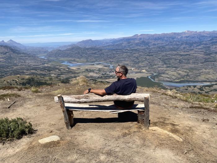 Wir lege eine Pause ein und schauen hinab ins Tal. Was für ein Anblick. Diese weite, menschenleere Landschaft liegt uns zu Füßen. Verschlungene Flußläufe das Ibañez-Tal, weit entfernte Gipfel und ein weites Spektrum an Naturtönen erfüllen unser Herz mit Glück und brennen sich tief in unser Gedächtnis ein.
