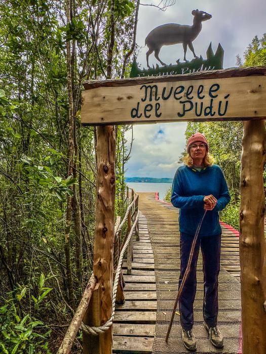 Die 6 stündige Überfahrt hätte Dank ruhiger See entspannt verlaufen können…für Kerstin war es wohl eine der schlimmsten Überfahrten.Scheinbar hat sie irgendetwas nicht vertragen …und sieht mächtig „grün“ aus. Gegen 23 Uhr haben wir Quellón erreicht. Unser Krankentransport (einer liegend, einer fahrend) hat die Fähre als erster verlassen. Die sehr kurze Nacht verbrachten wir auf einem freien Stellplatz in der Nähe einer Tankstelle und eines Krankenhauses. Den kommenden Tag fühlten wir uns beide total erschlagen. Daher sind wir nur ein paar Kilometer zu einem privaten Landschaftschutzgebiet gefahren. Ein ausgiebiger Mittagsschlaf brachte uns wieder auf Vordermann, so dass wir am Nachmittag den liebevoll angelegten Pudu Park besuchen konnten. Mit einer Schulterhöhe von 35 bis 38 cm, einer Kopf-Rumpf-Länge von 80 cm, einer Schwanzlänge von ca. 2 cm und einem Gewicht von 6 bis 8 kg zählt der Südpudu zu den kleinsten Vertretern aus der Familie der Hirsche. Leider haben wir die kleinen Hirsche nicht gesehen.Die Gastfreundschaft der Parkbesitzer hat uns entschädigt.Die Familie war so lieb und zuvorkommend.Sie gaben uns am nächsten Morgen ein selbstgebackenes Brot mit auf den Weg.