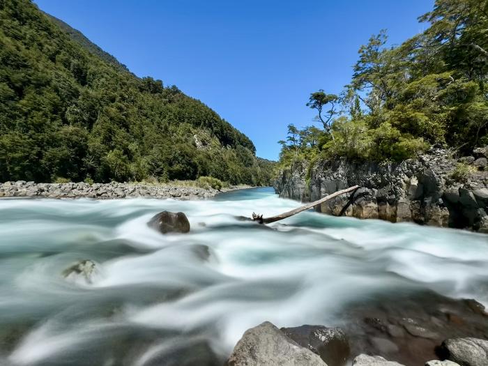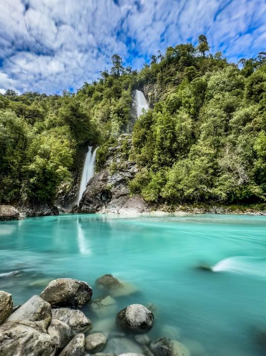 Die Termas del Sol sind bekannt für ihre heilende und therapeutische Eigenschaften. Die Temperatur der Becken variieren zwischen 36° und 45°. Umgeben von üppiger Natur, die zum Abschalten und Entspannen einlädt, verbringen wir mehrere Stunden dort. Was für eine Wohltat für unseren Körper. Tiefenentspannt sind wir am kommenden Tag bis zum Hafenstädtchen Hornopirén weitergefahren. Wir trödeln zunehmend mehr,und sind so im hier & jetzt und genießen die kleinen Dinge - wie z.B. süße Straßenhunde, den Markt (lassen uns hinsichtlich Mate beraten), eine schöne alte Holzkirche und guten Kaffee - ein wirklich schönes Örtchen . Am kommenden Tag nutzen wir das schöne Wetter, um im Nationalpark Hornopirén eine Wanderung zu unternehmen. Der 48.232 Hektar großer Nationalpark ist von gebirgiger Landschaft und dichtem Bewuchs durch kühlgemäßigten Regenwald charakterisiert. Entlang des türkisfarbenem Rio Blanco, einen Wildwassersport- und Raftingrevier, vorbei an vielen Bienenkästen geht unsere Wanderung zu einem Wasserfall.