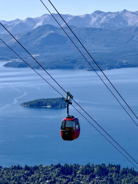 Um uns einen Überblick zu verschaffen, fahren wir auf den Hausberg Bariloches - Cerro Otto. Eine retro Gondel Seilbahn aus Österreich bringt die meisten Leute auf den 1.405m hohen Berg. Wir beschließen die Schotterpiste mit unserem Caddy bis zum drehenden Aussichtsrestaurant hochzufahren. Da auf dem Cerro Otto im Winter Skibetrieb ist, vermuten wir das der von uns gefahrene Weg zum Aussichtspunkt die Talabfahrt in der Wintersaison ist. Jedenfalls erwartete uns eine außergewöhnliche Aussicht. Im Norden sieht man die Stadt Bariloche und den Nahuel Huapi-See. Im Osten kann man die Hügel Leones und Villegas und einen Teil der patagonischen Steppe sehen. Im Süden können wir den Gutiérrez-See und andere nahe gelegene Hügel sehen; und im Westen befinden sich der Cerro Catedral, der Moreno-See und die Anden.