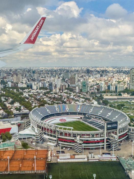 Ein Ort, von dem man schon so viel gehört hat – und doch überrascht er uns in jeder Hinsicht.Von Bariloche fliegen wir in knapp zweieinhalb Stunden in die argentinische Hauptstadt und landen am Stadtflughafen Jorge Newbery, direkt am Río de la Plata. Schon beim Landeanflug erkennen wir das legendäre Estadio River Plate, das größte Stadion Südamerikas mit Platz für über 84.000 Fans. Dieser Anblick ist ein Vorgeschmack auf das, was uns hier erwartet: Leidenschaft, Stolz und die unbeschreibliche Liebe der Argentinier zum Fußball. Hier ist Fußball nicht nur ein Spiel – es ist Religion, Zuflucht und Lebenselixier zugleich.