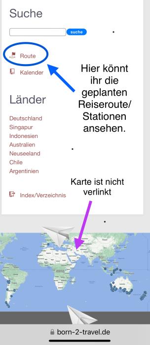 Wenn ihr auf der Hauptseite von unserem Reiseblog, dass Kartensymbol oder Route anklickt, findet Ihr unsere vorläufige Reiseplanung.