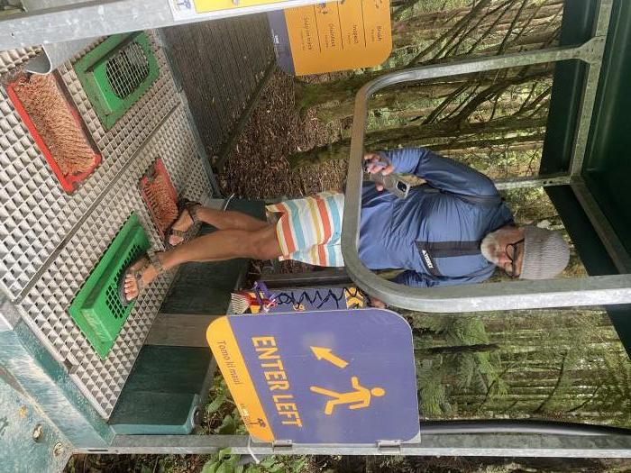 Wanderwege oberhalb des Waldbodens, sollen die Baumwurzeln schützen und die Verbreitung von schädlichen Pilzen unterbinden. Am Ein- und Ausgang zum Wald befinden sind Reinigungsstationen, wo man seine Schuhsohlen reinigt und desinfiziert. Was für eine wichtige und notwendige Maßnahme und die verbleibenden Riesen zu schützen.