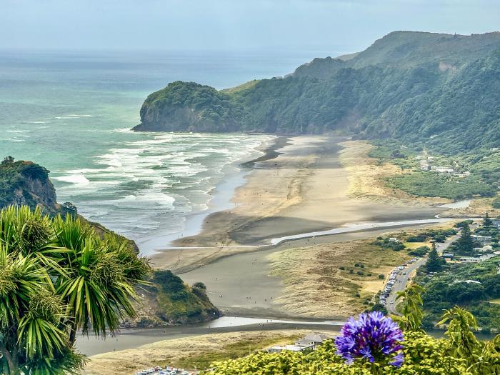 Nun ging unserer Reise in 2025 weiter. Wir streiften Auckland und landeten, dank der Empfehlung von Rita & Holga, in Piha einem entspannten Küstenort, welcher etwa 45 Minuten westlich von Auckland liegt. Der dramatische Strand wird von schroffen Klippen eingerahmt und wird von vielen Surfern frequentiert. Als Surfspot wurde bereits 1956 das Surfen dort erstmals in Neuseeland betrieben und seitdem fanden nationale und internationale Meisterschaften dort statt. Dieser Strand aus schwarzem Eisensand ist bekannt für seinen starken und sich ohne Vorwarnung ändernden Brandungsrückstrom und starke Strömungen.