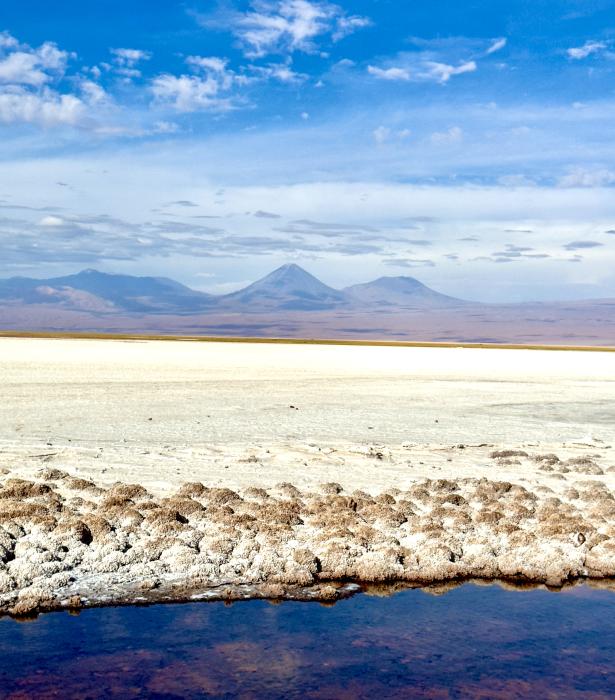Wir sehen ein komplett anderes Bild als die Salzebenen bei Atacama in Chile.