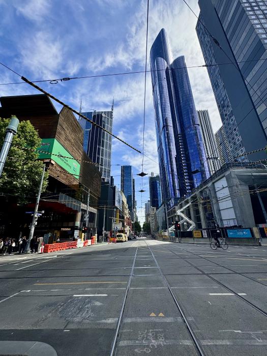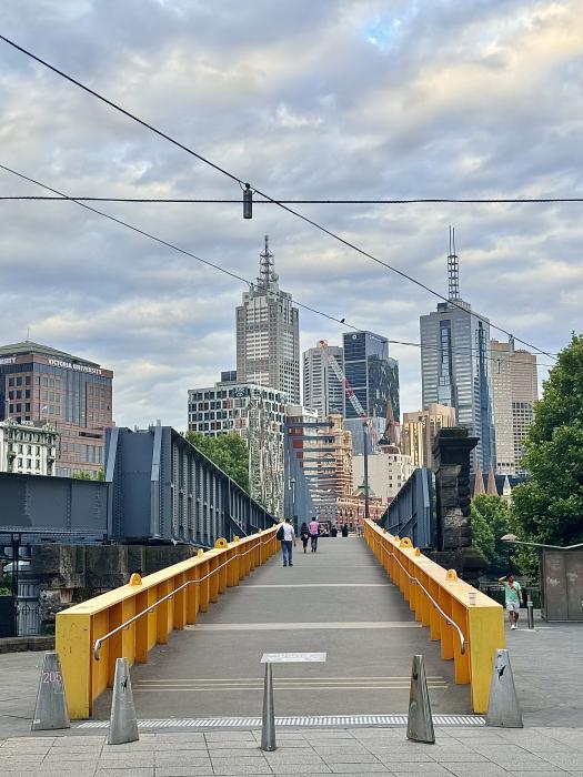 Weiter geht es zu einem der pulsierenden Herzen der Metropole - dem Federation Square. Dieser Platz wurde 2002 offiziell eröffnet und ist seitdem ein zentraler Treffpunkt. Die unvergleichliche Architektur hat öffentliche Debatten ausgelöst, da einige sie als zu modernistisch ansehen. Uns gefällt die Architektur aus Stahl/ Glas/ Sichtbeton und modernen Fassadenelementen sehr. Doch unabhängig von Meinungen und Debatten, Federation Square ist ein Ort, der lebt und atmet, und das Zentrum von Melbournes kulturellem Leben ist. Wir besuchen zwei Ausstellungen und nehmen uns genügend Zeit dafür. Auch dies ist kostenlos und für jedermann zugänglich - echt super.