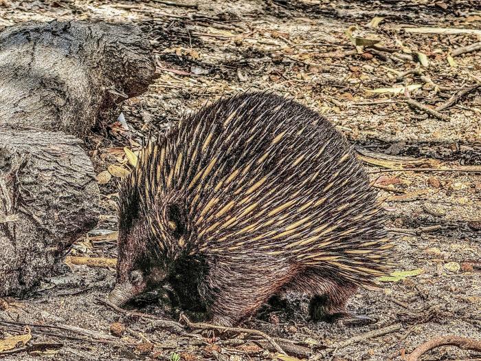 Aktuell leben um die 300 Koalabären dort, wovon viele entlang des Koala Trails zu sehen sind. Wir sehen etliche Koalas, manchmal weit oben im Baumwipfel und manchmal so nah, dass man Sie beim schlafen berühren könnte. Auch eine Mutter mit ihrem Junges haben wir beim schlafen beobachtet, in der Hoffnung, dass Sie noch aktiv werden. Aber nix da, die Süßen schlafen den meisten Teil des Tages. Trotzdem hatten wir mit einem sehr aktiven Tier großes Glück. Ein Armeisenigel ließ sich nicht von uns stören und pflügte mit seiner Schnauze den Boden, auf der suche nach Armeisen, kräftig um. Wir waren sehr happy den Armeisenigeln so gut beobachten zu können.
