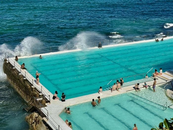 Neben dem eisblauen Pool ist auch das Bondi Icebergs Club-Gebäude ein wahrer Hingucker. Die weiße Fassade und die Panoramafenster ermöglichen einen atemberaubenden Blick über den legendären Bondi Beach und die tosende Brandung, in die der Icebergs Pool eingebettet ist. Wir ergattern einen Sonnenplatz und schwimmen erstmal ein paar Bahnen, im doch sehr kalten Meereswasser. Zum Glück konnten wir uns in der Sonne schnell wieder aufwärmen und haben die Atmosphäre genossen und die Poser beobachtet. Den Rückweg zum Backpacker haben wir zum Glück mit dem Bus bewältigt.