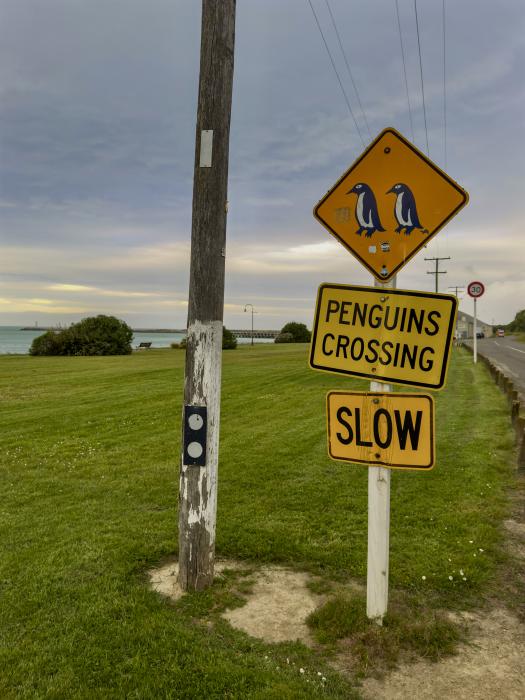Im Bereich des Hafens lebt die Oamaru Blue Penguin Colony, eine Kolonie von Zwergpinguinen. Wir spazieren am Abend zur Kolonie und beobachten die kleinsten Pinguine. Bis heute leben Pinguine vereinzelt auch unter einigen der strandnahen Schuppen. Nach Einbruch der Dunkelheit machen sie sich dem Weg zu ihren Nestern.