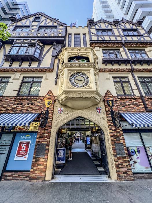 * Perth's Innenstadt: bietet einen starken Kontrast zwischen historischen Gebäuden aus der britischen Kolonial- und Besiedlungszeit und bis zu 249 m hohen Hochhäusern aus Glas, Stahl und Beton. Dieser architektonische Mix verleitet mich dazu, den Gegensatz mit etlichen Fotos festzuhalten. Die meisten alten historische Gebäude wurden in der damaligen Zeit durch Gefangene errichtet.
