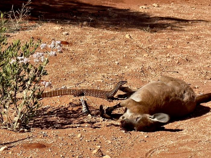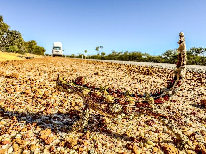 Wir hatten uns einen freien Stellplatz an einem See ausgesucht. Die Dämmerung setzte so langsam ein, als wir auf der Straße vor uns einen Langschnabel Ameisenigel entdeckten. Die stachligen Gesellen heißen und sehen zwar so aus wie Igel, sind aber so genannte Kloakentiere. Wie die Schnabeltiere legen Ameisenigel Eier und säugen dann Ihre Jungen. Was hatten wir für ein Glück dieses seltenen Tier zu sehen. In der Dämmerung hoppeln noch einige Kängurus und Wallabies an und auf der Strasse und wir sind froh unfallfrei bis zum Schlafplatz zu kommen.