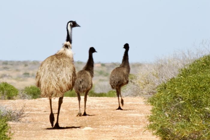 Die besondere Tierwelt von Monkey MiaWir wollen am nächsten Morgen nach Monkey Mia. Dort gibt es seit Jahren eine große Delfinfamilie, die vormittags in die Bucht kommt. Daraus hat sich ein Marine Park entwickelt .Der Eintritt kostet 15 Dollar pro Person und wird ausschliesslich für Projekte vor Ort verwendet.Wir stehen früh auf und fahren ohne Frühstück los. Unterwegs sehen wir Emus und Kängurus.