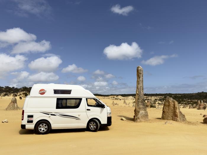Der Roadtrip startetWir holen am 11.Okt. unseren Camper in Perth ab. Der alte Hippie ist ein Toyota Kastenwagen mit Innenausbau. Technische Highlights sind die Mikrowelle, der Wasserkocher und der Kühlschrank, welcher mittels eines Gummis die Tür verschlossen hält. Die Jahre sieht man dem Happy Hippo draußen und drinnen an.