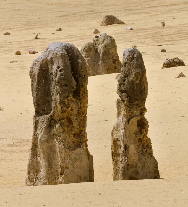 Die quarzsandhaltige Wanderdüne zog jährlich ca. 2,5 m weiter, die frei liegende Kalksteinschicht war der Erosion ausgesetzt, die innerhalb der letzten 20.000 Jahre abgestorbene Vegetation hinterließ Lücken, in die Quarzsand eindrang, der dann wiederum abgetragen wurde. Nur die extrem festen Bereiche der durch viel Wassereinwirkung, mit darin gelösten Mineralen, nachträglich zementierten Kalksteinschicht waren von der Erosion nicht betroffen. Diese sieht man heute als Pinnacles.