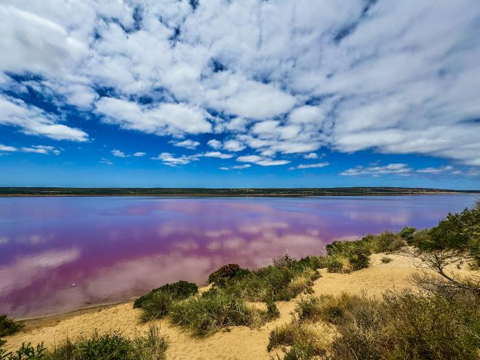 In der Nähe der Küste von Esperance befindet sich der berühmten rosa See Westaustraliens. Experten wissen nicht genau, warum der Lake Hillier rosa ist – manche sagen, es liegt an den Algen, andere vermuten, dass die Farbe auf ein Bakterium im Wasser zurückzuführen ist. Wir hatten einen kurzen Stop, ein paar Fotos, die Beine vertreten und weiter geht es.