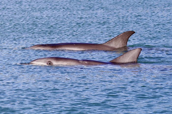 Ziemlich pünktlich gegen 8 kommen drei Delfine der Familie ziemlich nahe an den Strand., sie kommen sogar so nah, dass wir Ihnen in die Augen schauen können. Wir sind ziemlich berührt und freuen uns.