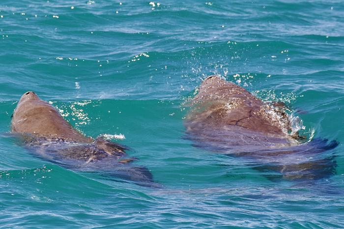 Da sich in der Shark Bay 10 Prozent des Weltbestandes der Seekühe rumtreiben, sind wir frohen Mutes bei der Segeltour mit einem Katamaran, welche zu Gesicht zu bekommen. Und was haben wir für ein Glück, Seekuh und Kalb und auch einzelne Seekühe kommen ziemlich nah ans Boot und wir staunen wieder. 600-800 Kilo und so elegant im Wasser. Die Schwanzflosse sieht aus wie bei einer Meerjungfrau. Wir erfahren auf der Tour viel Wissenswertes über Seegras und wie nützlich und wichtig dieses ist. Die Population von Seekühen und Schildkröten korreliert mit dem Vorhandensein von ausreichend Seegras. 2011 wurde Seegras durch Umwelteinflüsse abgetragen und in diesem Jahr wurden keine Kälbchen gesichtet.