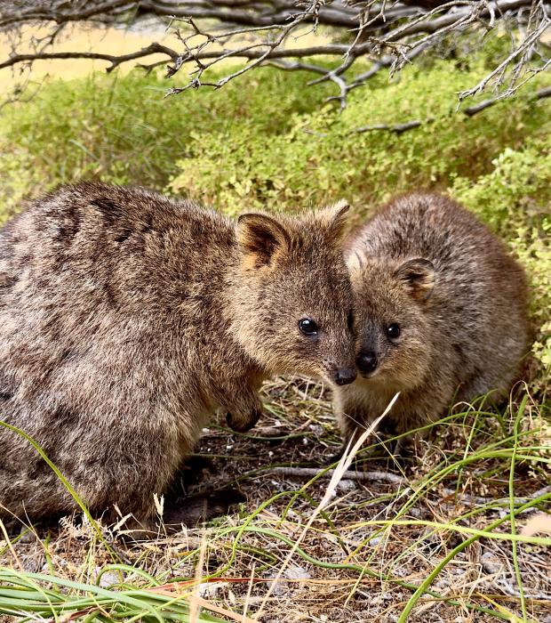 Tatsächlich gehören die Quokkas zur Familie der Kängurus. Sie sind Kurzschwanzkängurus. Rottnest Island ist berühmt für seine Quokkas. Dort ist die weltweit größte Kolonie der Tiere. Sein niedliches Gesicht und “Lächeln” hat ihm international den Titel: “Das glücklichste Tier der Welt” verliehen.
